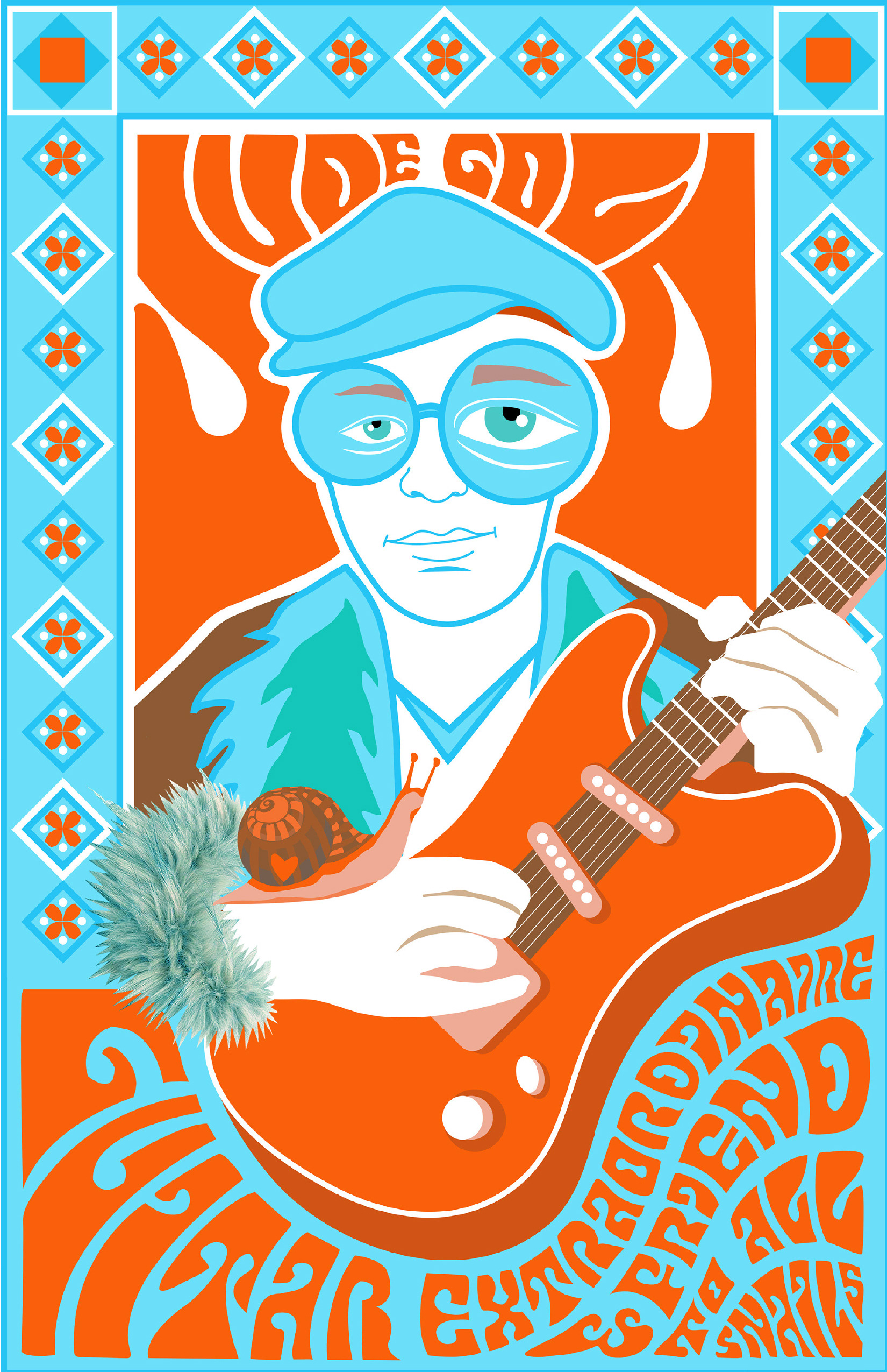 I designed this poster for Jefferson Starship lead guitarist, Jude Gold, who refused to eat escargot on the Flower Power cruise. This poster is a testament to his support of snails.